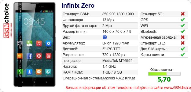 Данные о телефоне Infinix Zero на Вашем сайте