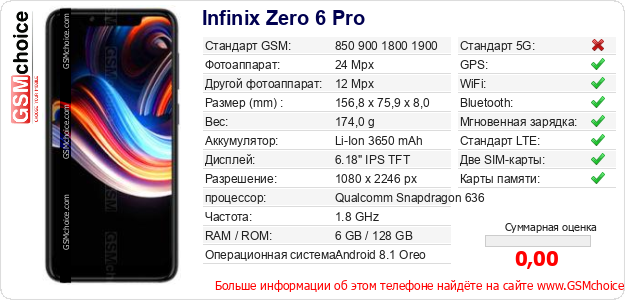 Данные о телефоне Infinix Zero 6 Pro на Вашем сайте