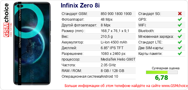 Данные о телефоне Infinix Zero 8i на Вашем сайте