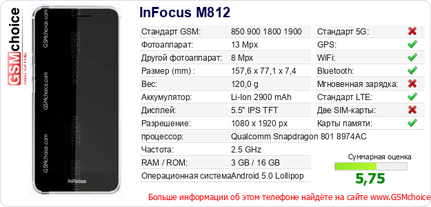 Данные о телефоне InFocus M812 на Вашем сайте
