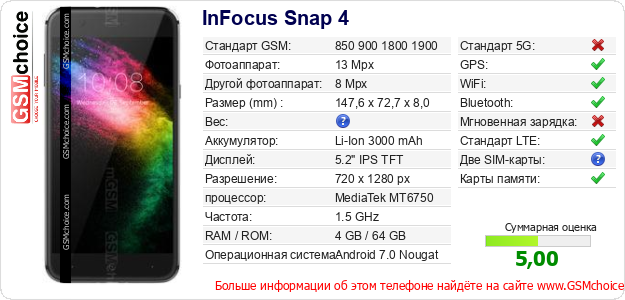 Данные о телефоне InFocus Snap 4 на Вашем сайте