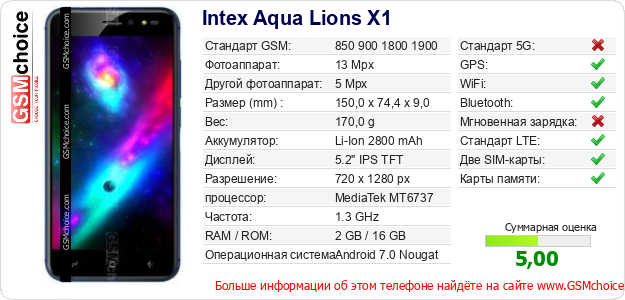 Данные о телефоне Intex Aqua Lions X1 на Вашем сайте