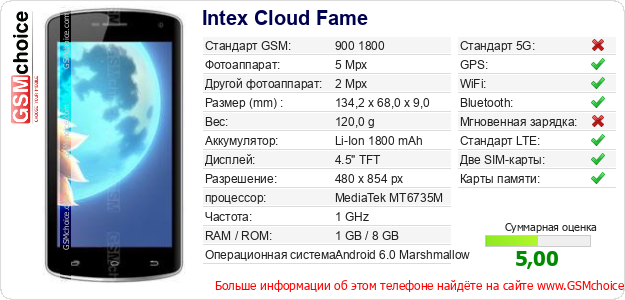 Данные о телефоне Intex Cloud Fame на Вашем сайте