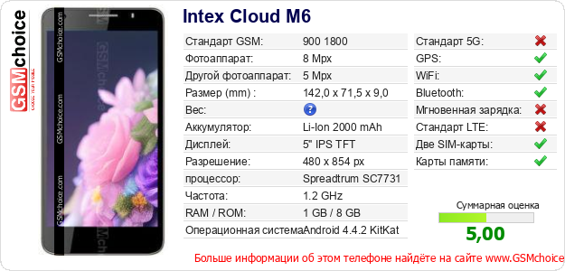 Данные о телефоне Intex Cloud M6 на Вашем сайте