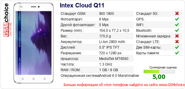 Данные о телефоне Intex Cloud Q11 на Вашем сайте