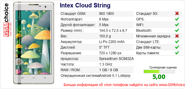 Данные о телефоне Intex Cloud String на Вашем сайте