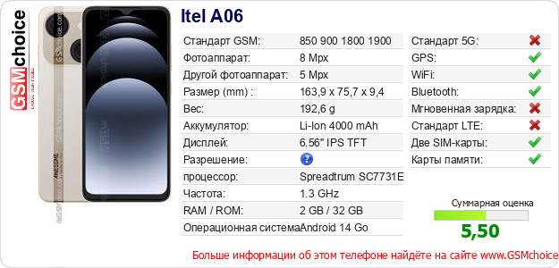 Данные о телефоне Itel A06 на Вашем сайте