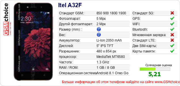 Данные о телефоне Itel A32F на Вашем сайте