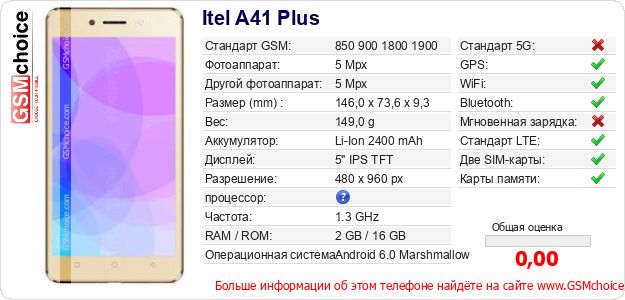 Данные о телефоне Itel A41 Plus на Вашем сайте