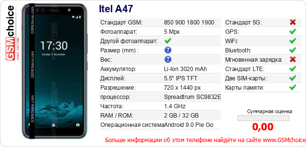 Данные о телефоне Itel A47 на Вашем сайте