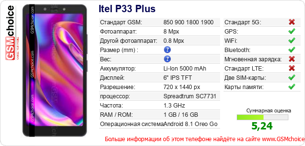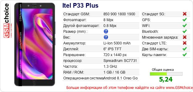Данные о телефоне Itel P33 Plus на Вашем сайте