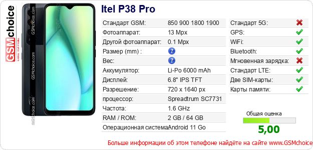 Данные о телефоне Itel P38 Pro на Вашем сайте