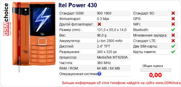Данные о телефоне Itel Power 430 на Вашем сайте