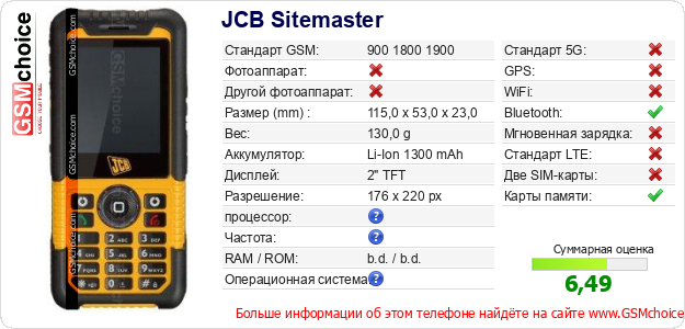 У Тебя есть свой сайт? Хочешь где-то разместить информацию о базовых данных мобильника JCB Sitemaster ? Это запросто устроить. Достаточно скачать картинку или скопировать и разместить на соответствующем сайте нижерасположенный код:Размещение этого кода вызовет появление нижерасположенной картинки: