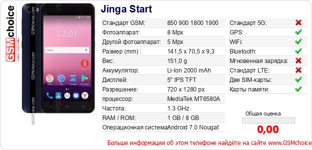 У Тебя есть свой сайт? Хочешь где-то разместить информацию о базовых данных мобильника Jinga Start ? Это запросто устроить. Достаточно скачать картинку или скопировать и разместить на соответствующем сайте нижерасположенный код:Размещение этого кода вызовет появление нижерасположенной картинки: