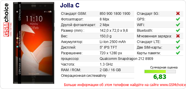 У Тебя есть свой сайт? Хочешь где-то разместить информацию о базовых данных мобильника Jolla C ? Это запросто устроить. Достаточно скачать картинку или скопировать и разместить на соответствующем сайте нижерасположенный код:Размещение этого кода вызовет появление нижерасположенной картинки: