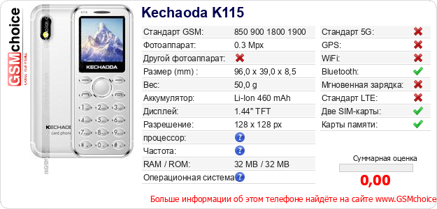 Данные о телефоне Kechaoda K115 на Вашем сайте