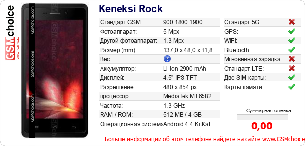 Данные о телефоне Keneksi Rock на Вашем сайте