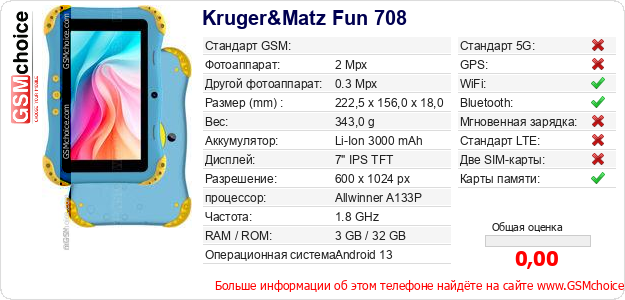 Данные о телефоне Kruger&Matz Fun 708 на Вашем сайте