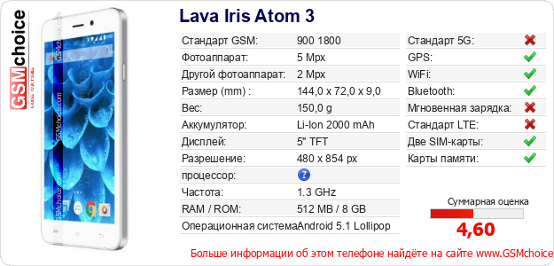 Данные о телефоне Lava Iris Atom 3 на Вашем сайте