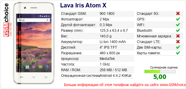 Данные о телефоне Lava Iris Atom X на Вашем сайте