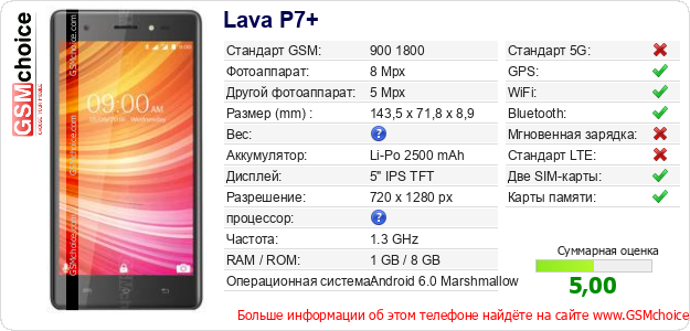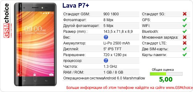 Данные о телефоне Lava P7+ на Вашем сайте