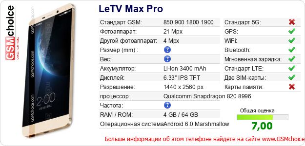 Данные о телефоне LeTV Max Pro на Вашем сайте