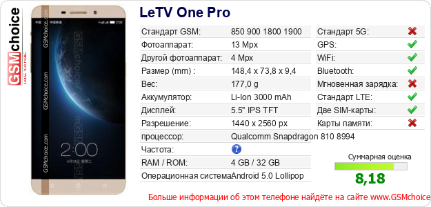 Данные о телефоне LeTV One Pro на Вашем сайте