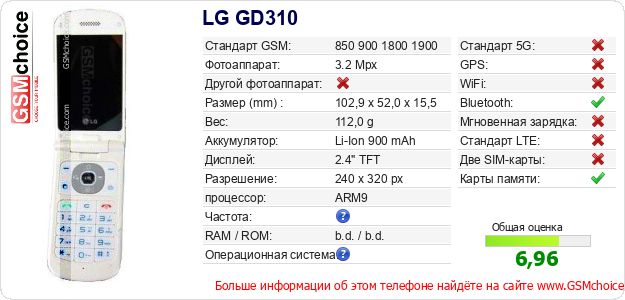 У Тебя есть свой сайт? Хочешь где-то разместить информацию о базовых данных мобильника LG GD310 ? Это запросто устроить. Достаточно скачать картинку или скопировать и разместить на соответствующем сайте нижерасположенный код:Размещение этого кода вызовет появление нижерасположенной картинки: