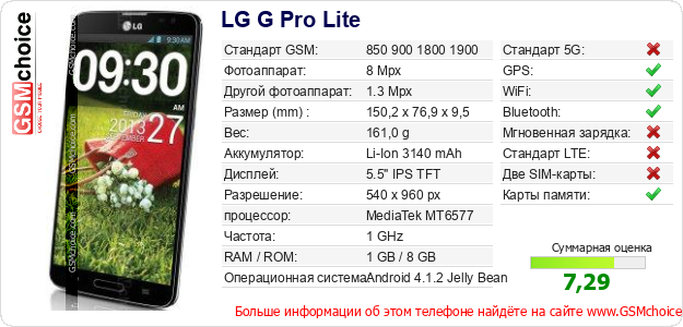 Данные о телефоне LG G Pro Lite на Вашем сайте