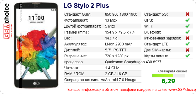 Данные о телефоне LG Stylo 2 Plus на Вашем сайте