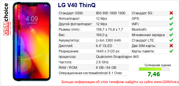 Данные о телефоне LG V40 ThinQ на Вашем сайте