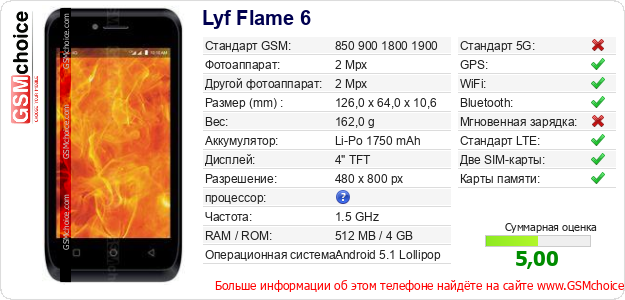 Данные о телефоне Lyf Flame 6 на Вашем сайте