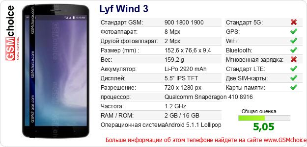 Данные о телефоне Lyf Wind 3 на Вашем сайте