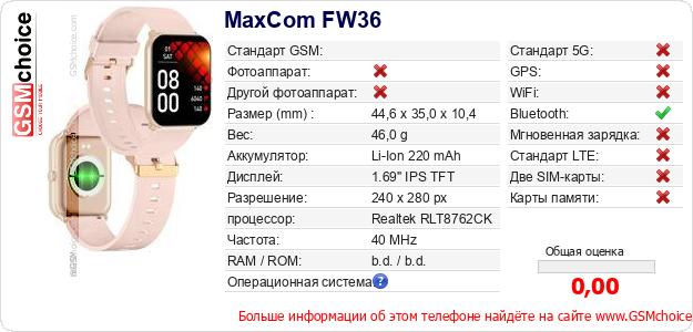 Данные о телефоне MaxCom FW36 на Вашем сайте