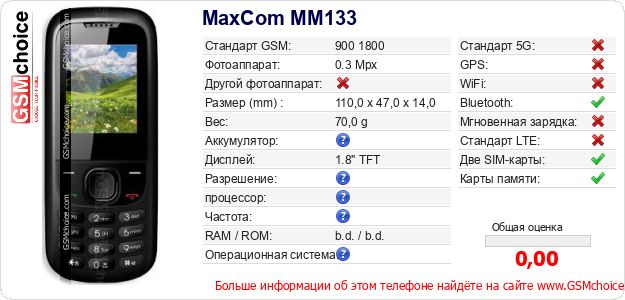 Данные о телефоне MaxCom MM133 на Вашем сайте