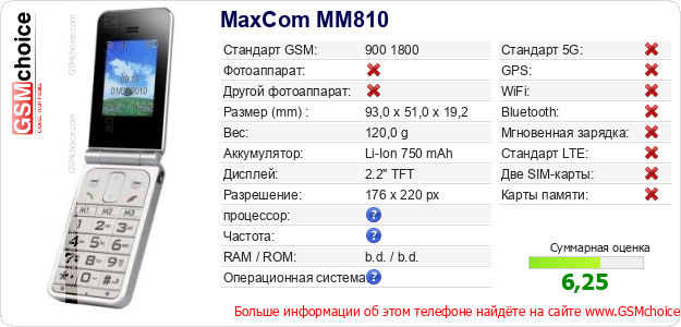 Данные о телефоне MaxCom MM810 на Вашем сайте