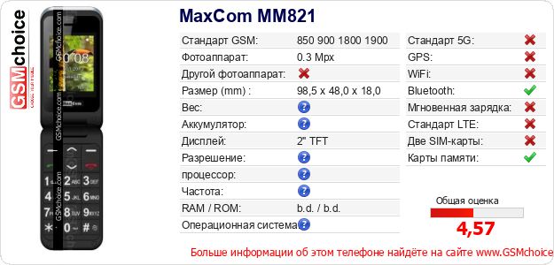Данные о телефоне MaxCom MM821 на Вашем сайте