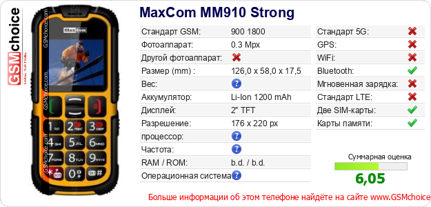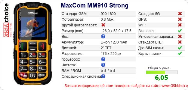 Данные о телефоне MaxCom MM910 Strong на Вашем сайте