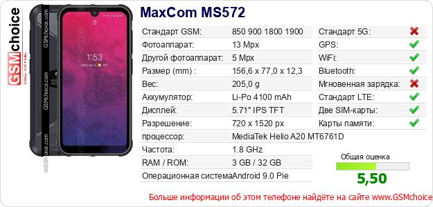Данные о телефоне MaxCom MS572 на Вашем сайте