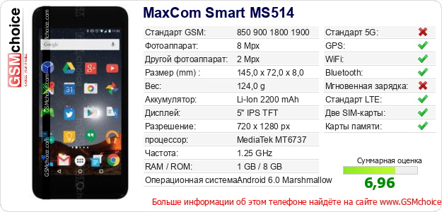 Данные о телефоне MaxCom Smart MS514 на Вашем сайте