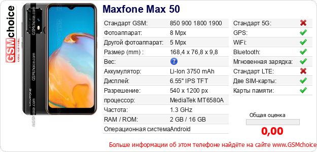 Данные о телефоне Maxfone Max 50 на Вашем сайте