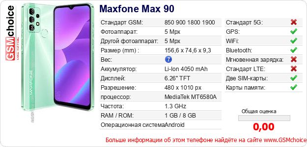 Данные о телефоне Maxfone Max 90 на Вашем сайте