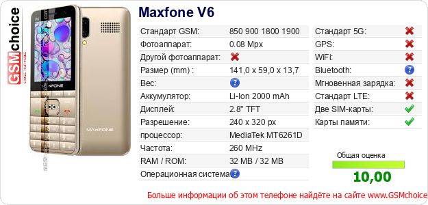 Данные о телефоне Maxfone V6 на Вашем сайте