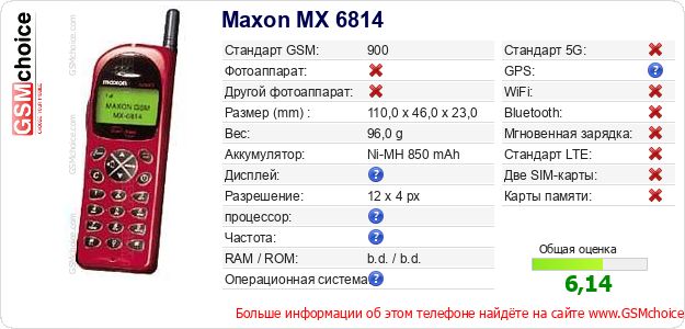 Данные о телефоне Maxon MX 6814 на Вашем сайте