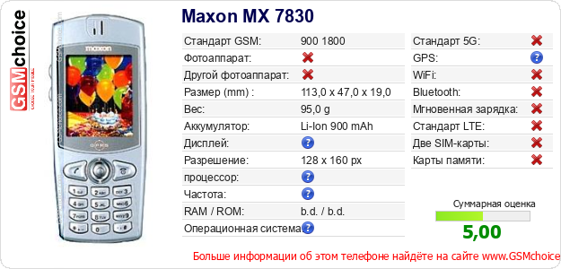 Данные о телефоне Maxon MX 7830 на Вашем сайте