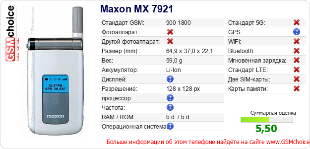 Данные о телефоне Maxon MX 7921 на Вашем сайте