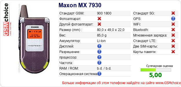 Данные о телефоне Maxon MX 7930 на Вашем сайте