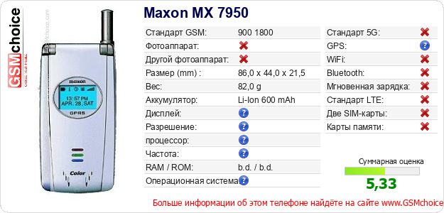 Данные о телефоне Maxon MX 7950 на Вашем сайте