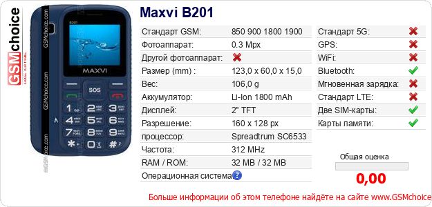 Данные о телефоне Maxvi B201 на Вашем сайте